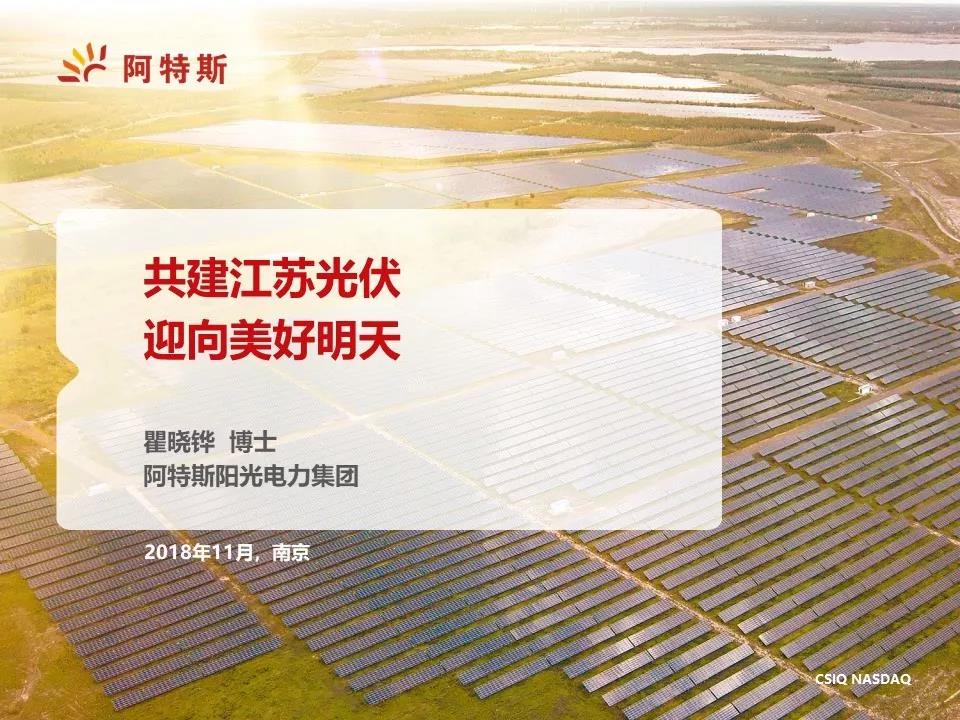 2018年11月23日,由江苏省光伏产业协会主办,阿特斯阳光电力集团协办的“畅享江苏光伏新发展”研讨会暨省光伏产业协会十周年纪念大会在江苏南京举行。省发改委、省能源局、省经信委、省科技厅、省商务厅、国家发改委能源研究所、省协会领导、协会成员企业、媒体及相关人士近400人参会。