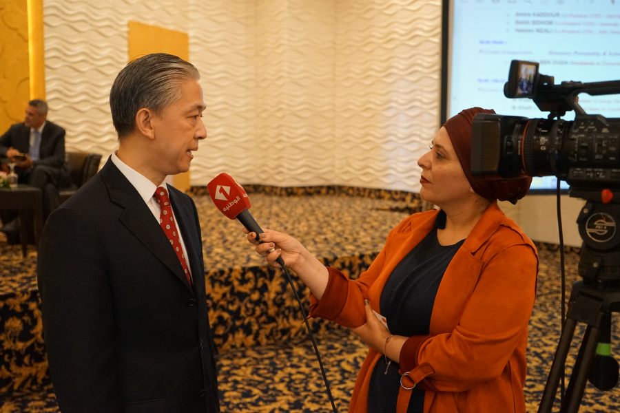 日前,驻突尼斯使馆与突国际知识组织协会、突中友好协会合作举办“一带一路”和可再生能源与绿色发展论坛,汪文斌大使、突高等教育和科研部长卡尔布斯、前能源部长卡杜尔、迦太基大学校长本·乌达、突中友好协会主席热巴利、塞内加尔国家科研促进署署长姆巴克以及相关领域专家学者等约150人出席。