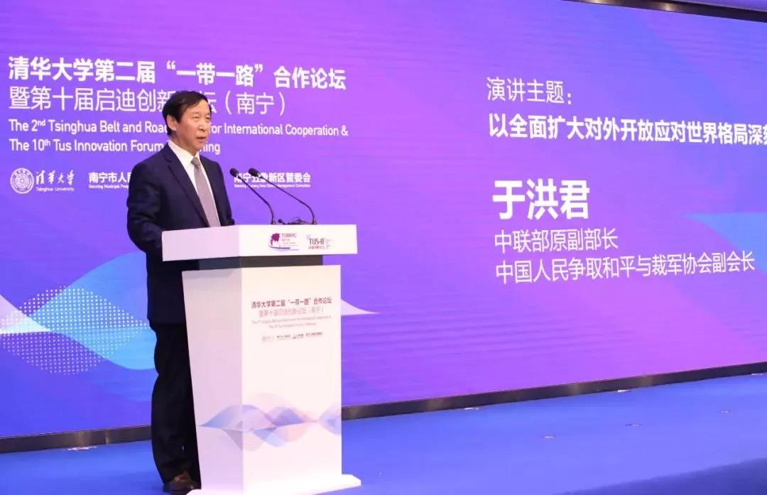 于洪君发表了题为《以全面扩大对外开放应对世界格局深刻变革》的主旨演讲。他认为,“一带一路”建设,开辟出了中国与世界联动发展、融合发展的崭新格局,越来越多的国家和国际组织与中国签署有关“一带一路”的合作文件,中国与时代同行,世界与中国同在的人类历史新阶段已经到来。