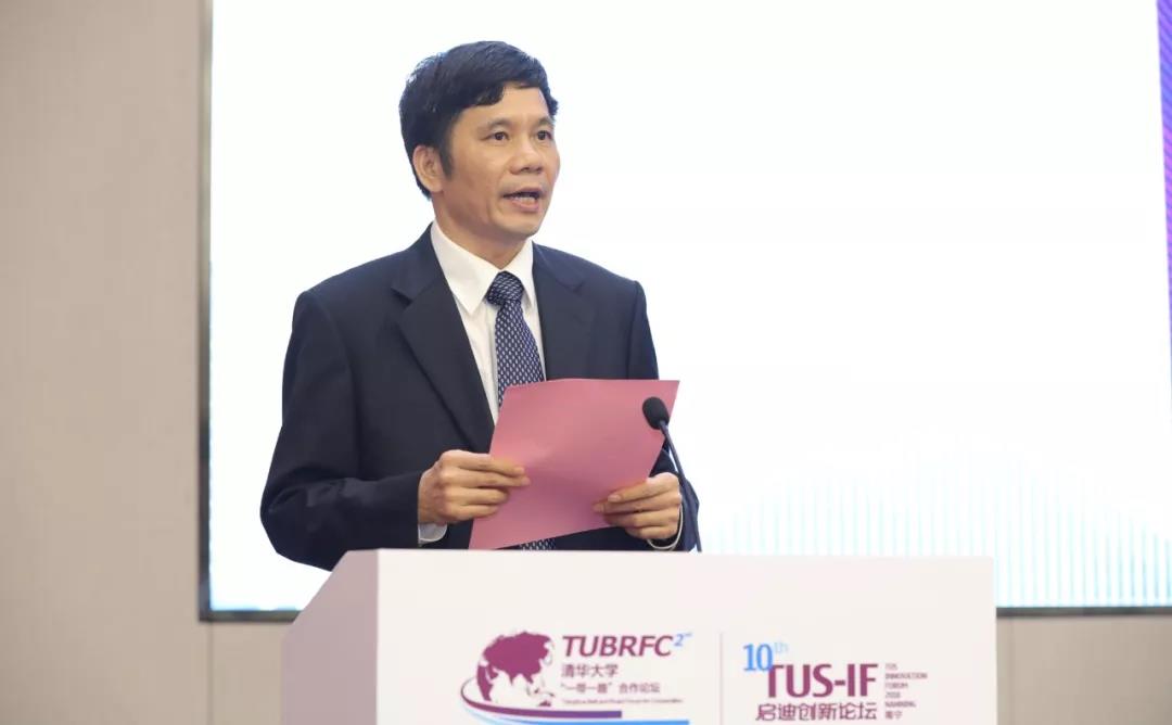 本届论坛以进一步落实“一带一路”倡议为主旨,积极响应东盟共同体建设号召,交流各国创新合作实践与政策经验,为应对全球化挑战,共商深化“一带一路”创新合作新举措,致力于以创新合作促进中国与东盟各国发展,携手共进,共达新时代背景下的新愿景。南宁市副市长朱会东,清华大学原党副书记胡显章,中国电子信息行业联合会会长、原信息产业部部长、党组书记王旭东,启迪控股董事长王济武出席开幕式并致辞。中联部原副部长、中国人民争取和平与裁军协会副会长于洪君,缅甸联邦共和国驻华大使馆公使Mr.Han Win Aung,广西壮族自治区科技厅厅长曹坤华,中国—东盟商务理事会执行理事长许宁宁做主旨发言。论坛开幕式由清华大学一带一路战略研究院执行院长史志钦主持。