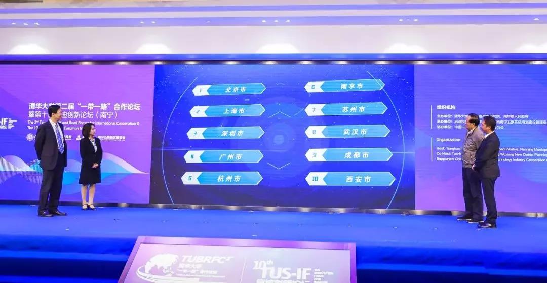 从2011年起,启迪创新研究院连续八年发布《中国城市创新创业环境评价研究报告》,获得了广泛关注和社会认可。在本届论坛开幕式上,启迪控股荣誉董事长梅萌,启迪控股常务副总裁陈鸿波,启迪控股高级副总裁、启迪科技城集团总裁马晓伟,启迪创新研究院副院长杨红梅为2018年度中国城市创新创业环境前十名的城市揭幕。