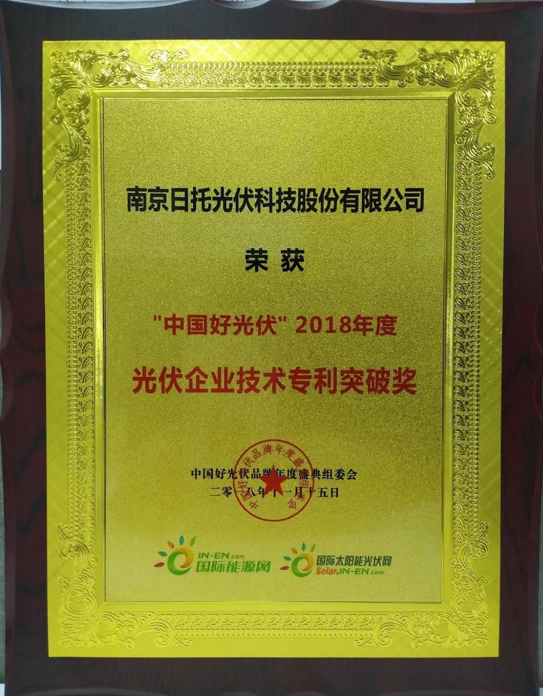 2018年度光伏企业技术专利突破奖