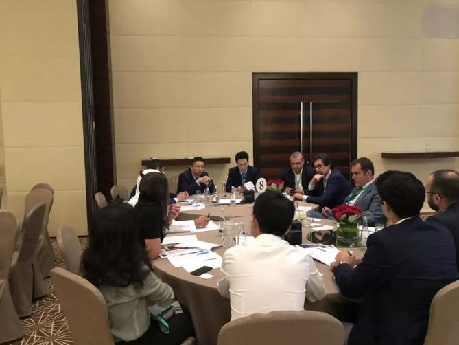 特变电工国际事业部总经理张湉(左六)与投资商讨论中东能源变革