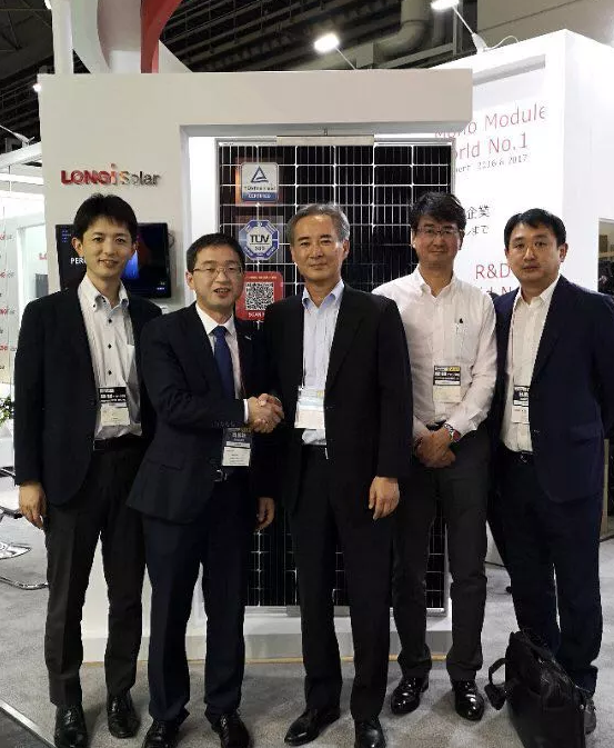 夏普公司社长佐佐岗前来隆基展台参观合影