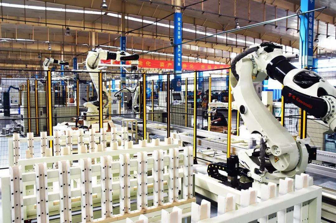 力诺瑞特智慧互联热泵工厂,7台套川崎机器人与周边设备构成了智慧互联的有机整体。各工作站通过视觉系统实现线体和产品的精确定位,机器人根据设定的产品型号,通过伺服系统调整夹具姿态实现自动换型,产品通过自动输送线实现全程自动周转和运行。