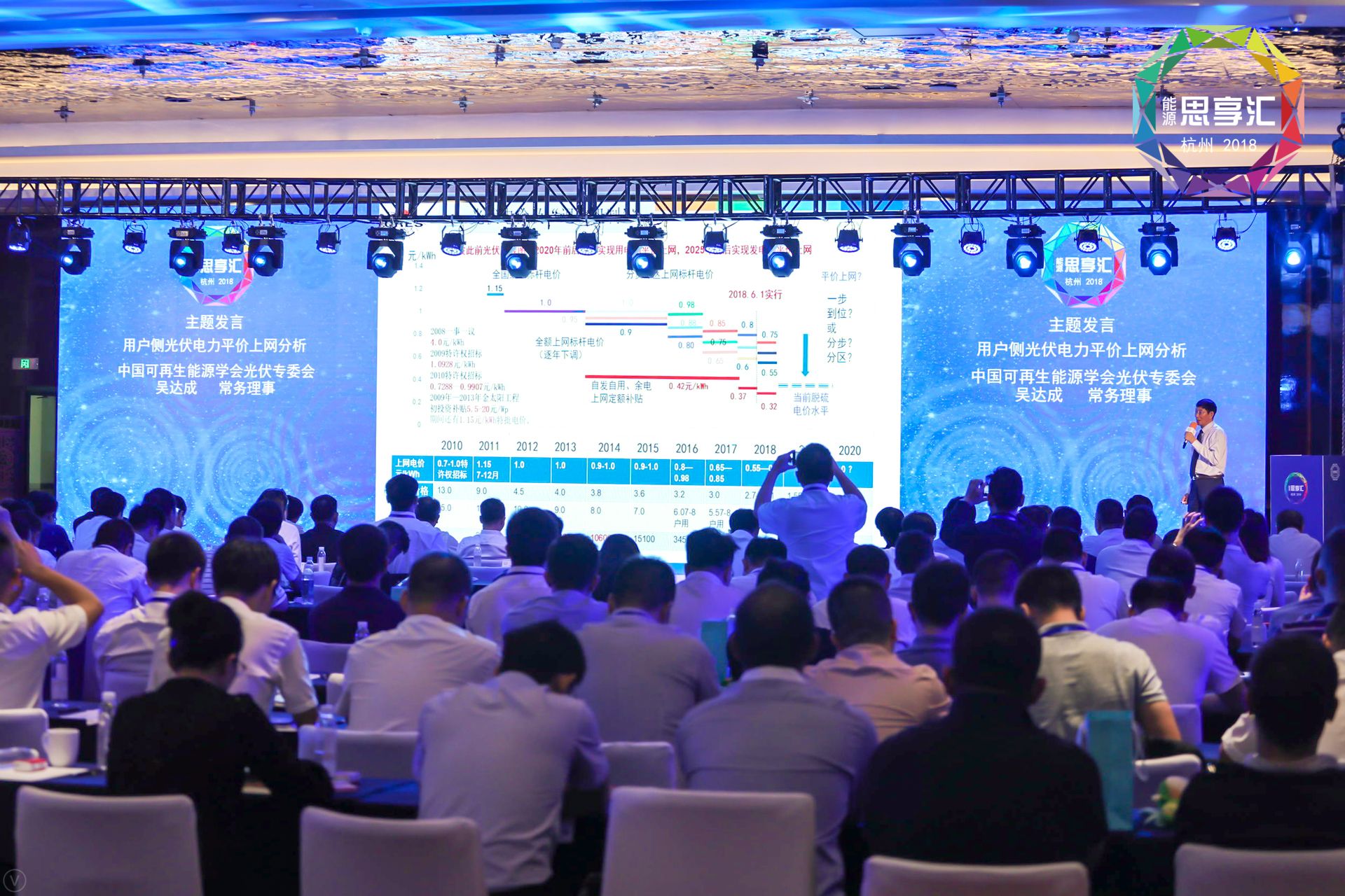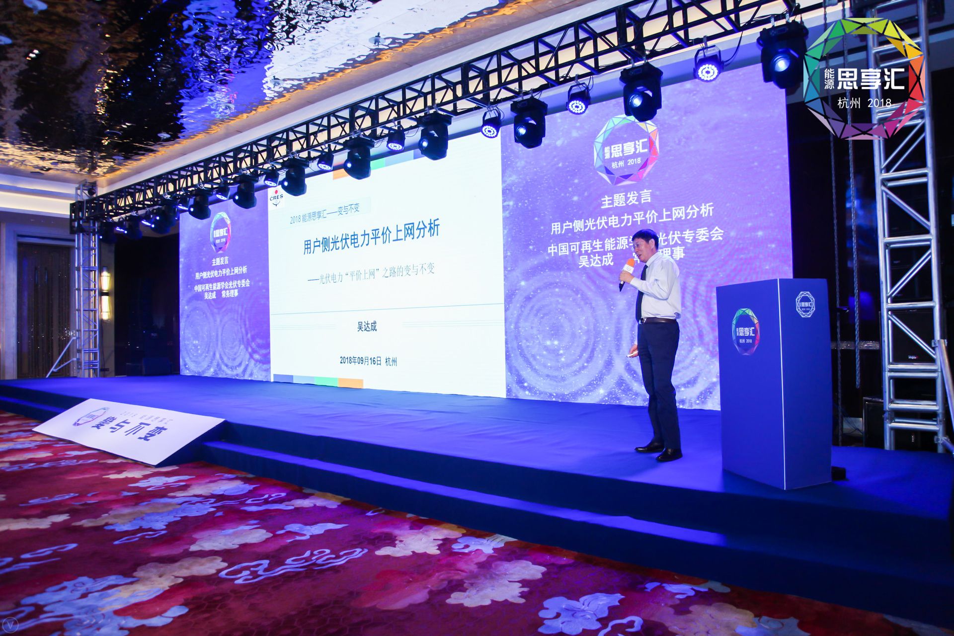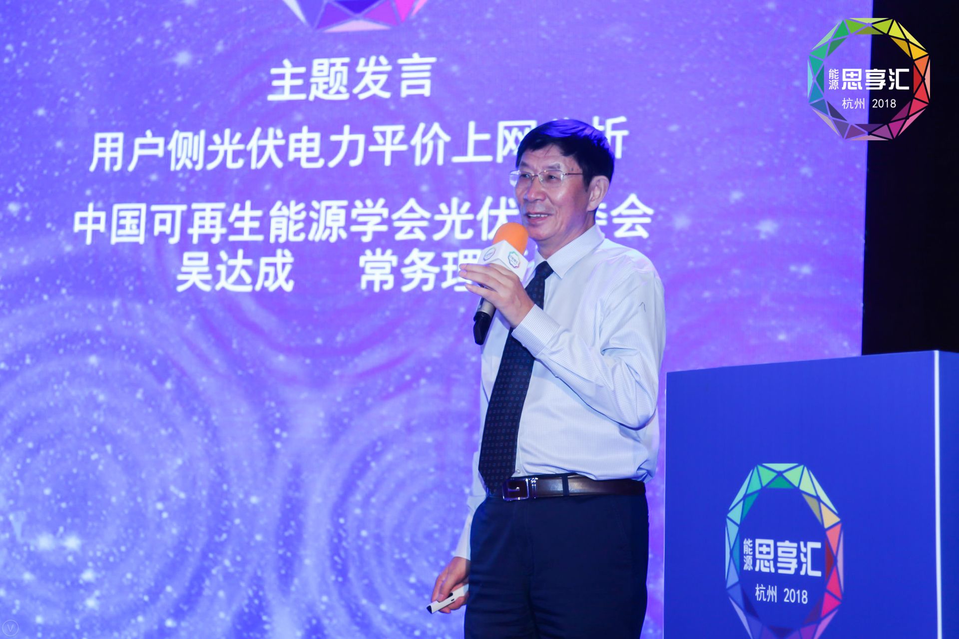 中国可再生能源学会光伏专委会常务理事吴达成做主题发言,分享主题《用户侧光伏电力平价上网分析》。