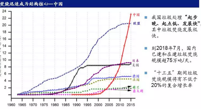 接着分别介绍了全球不同区域的垃圾处理状况,分析了欧州、英国、美国、日本等国家的垃圾处理能力,总结了国际垃圾处理的发展形势:英国垃圾焚烧成为欧洲最大的新兴市场;日本不同类型焚烧设施总数减少但大厂增加,总处理量基本稳定,发展相对成熟;美国近年来处于停滞状态;中国的垃圾处理发展正在进入全速发展阶段。