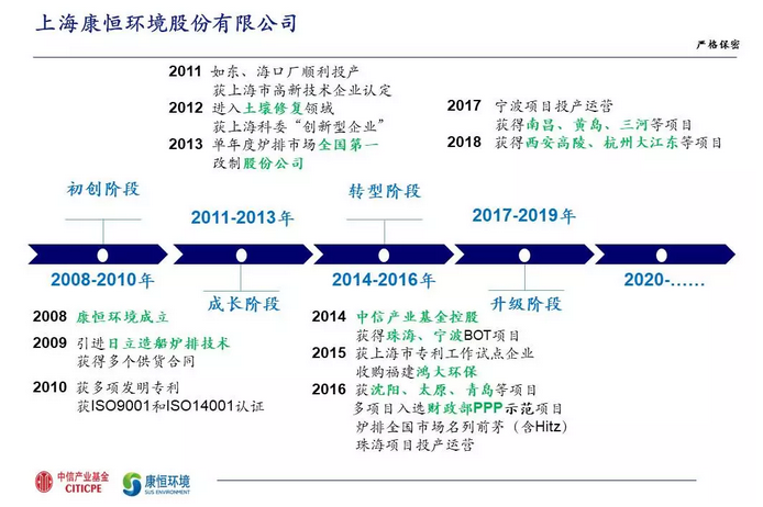 “康恒环境”全称“上海康恒环境股份有限公司”,是中信产业基金控股固废综合治理专业平台公司,公司主营业务涵盖:以垃圾焚烧发电厂为核心的静脉产业园区的投资、建设、运营;瑞士VonRoll- 日立造船机械炉排垃圾焚烧技术、设备及EPC;农林废弃物能源化利用解决方案。目前康恒环境已成长为国内集投资、建设、运营为一体的全产业链固废综合治理环保领军企业。
