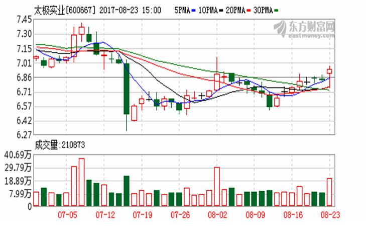 太极实业于2017年8月22日发布2017年中报业绩,实现营业收入53.05亿元,同比增长29.51%(追溯调整后);归属于上市公司股东的净利润1.67亿元,同比增长112.29%(追溯调整后);基本每股收益0.08元/股,同比增长300%。