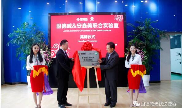 2018年7月2日,筹备已久的固德威与安森美联合实验室迎来了隆重揭牌仪式。固德威总经理黄敏、副总经理方刚,安森美亚太区总裁David Chow、中国区销售副总裁Roy Chia、文晔副总经理Jerry Chang等领导共同出席了揭牌仪式。此次强强联合旨在为光伏逆变器技术创新搭建一个有效沟通合作的平台,借助此平台双方资源整合、优势互补,共同推动光伏逆变器前沿技术的突破和应用。