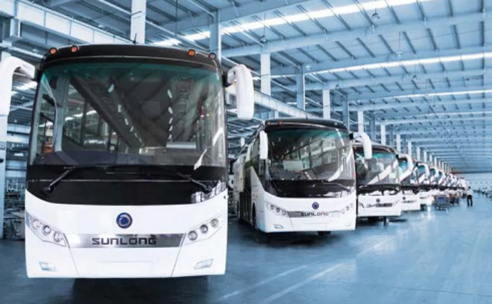 绿色发展 公开资料显示,2017年被东旭收购后,上海申龙客车当年销售超过7000辆,实现销售收入43亿,相比2016年3800辆翻了一番,跻身行业前八强。同时,东旭还计划在广西、四川、江苏建设三大新能源汽车基地,其中广西基地建设已经启动。图为申龙客车生产车间。