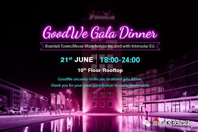 为了答谢广大客户的支持,固德威精心准备了丰盛的晚宴,搭建沟通平台,盛夏之夜三五好友一起聊聊世界杯,聊聊新能源,聊聊未来,无比惬意,6月21日18:00-24:00邀上好友盛装出席吧!