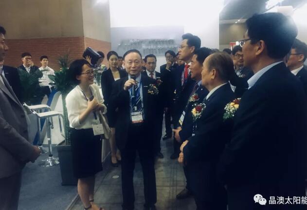 2018世界太阳能博览会(EXPO Solar 2018)于6月14日至16日在韩国首尔国际会展中心(KINTEX)盛大举行。作为韩国首屈一指的专业光伏展会,影响力辐射至亚洲及中东地区,今年是晶澳太阳能第五次参展。晶澳太阳能董事长兼首席执行官靳保芳先生受邀出席剪彩仪式,与韩国政府领导及重量级参展企业代表共同见证了开幕式,并一同前往晶澳展台参观新产品,交流新技术。
