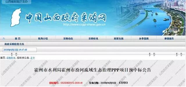让生活更美好!东旭蓝天中标霍州市汾河流域生态治理项目