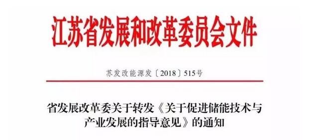 6月1日,江苏省发改委发布了《关于转发<关于促进储能技术与产业发展的指导意见>的通知》。除要求加强贯彻去年10月五部委发布的储能发展指导意见外,还特地提出“简化项目审批手续、加强规划统筹发展和分级分类协调管理”等三大具体落实要求。