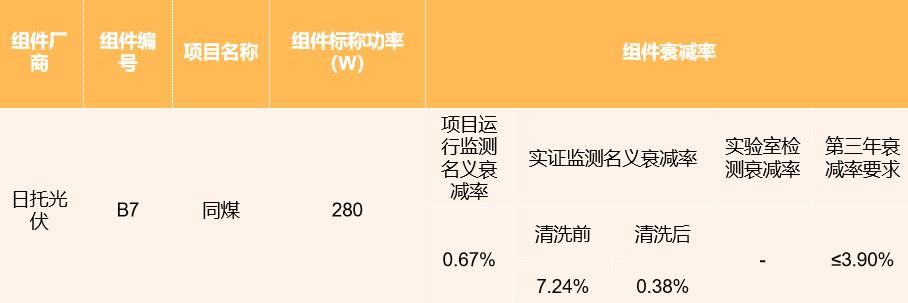 高可靠性、高寿命一直是日托光伏是六大价值主张的核心要义,实现组件优异衰减控制,保证组件高效稳定发挥是日托MWT组件优势所在。按照领跑者项目要求,项目组件衰减率应满足首年不超过2.5%(多晶)、3.0%(单晶),之后每年衰减率不高于0.7%。截至2019年,大同基地各项目并网运行进入第三年,多晶和单晶组件衰减率要求分别为3.9%和4.4%。下表中截取了MWT 多晶组件2019年9、10、11月份的名义衰减率数据: