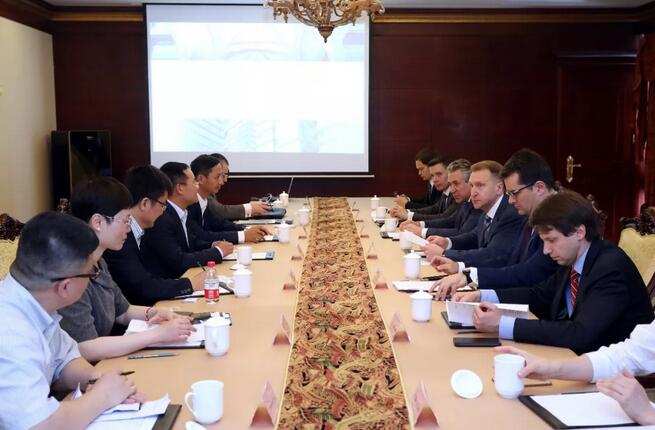 双方座谈务实而充满建设性。针对舒瓦洛夫主席在精准医疗、老工业基地改造、科技园建设、创投基金、环保项目及区块链技术等领域的合作建议,王济武董事长给出了积极回应。