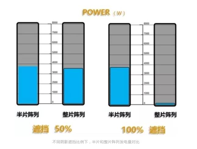 3.更高发电量,能大幅提升阴影遮挡发电量。