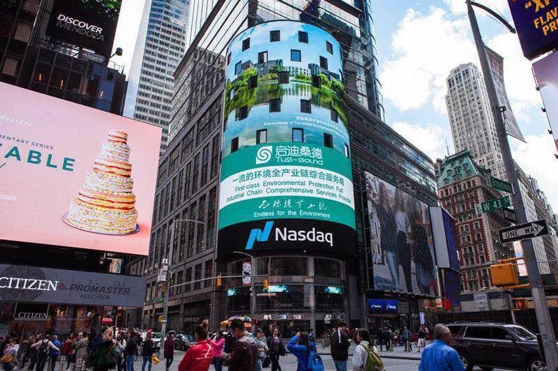 “为环境无止境”!启迪桑德强势登陆美国纳斯达克大屏“发声”