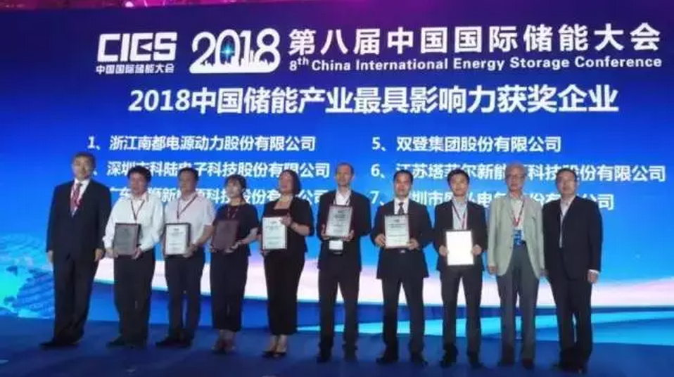 5月19-21日,由中国化学与物理电源行业协会主办在深圳召开的“第八届中国国际储能大会”,双登集团作为大会专场嘉宾参会并发表主题演讲,详细介绍了标准化铅炭储能系统及锂电储能系统的设计理念、产品特点、技术参数以及相关的项目应用案例,同时荣获“2018年度中国储能产业最具影响力奖”。
