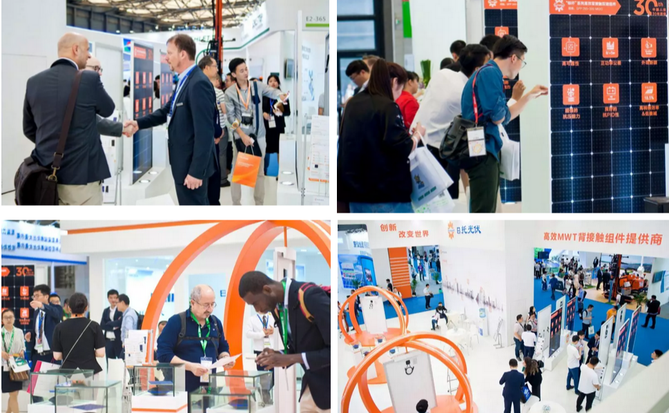 日托光伏高效组件展区人头攒动,“标杆”系列高效背接触组件全新亮相,吸引了众多国内外观展人员的驻足观看与交流,获得国内外参展人员的一致认可。