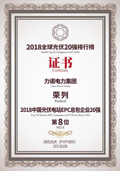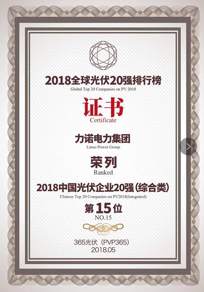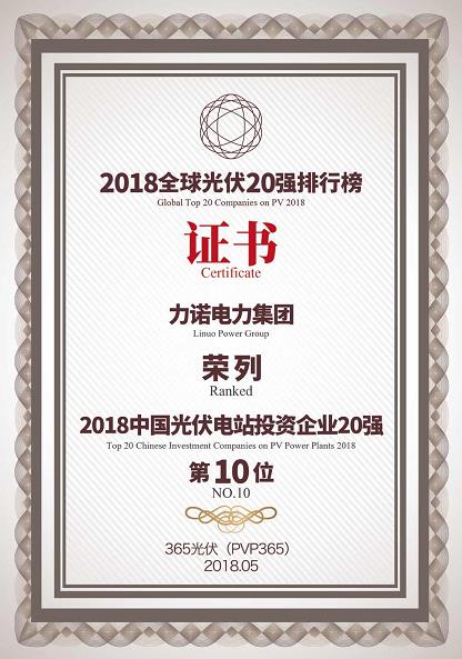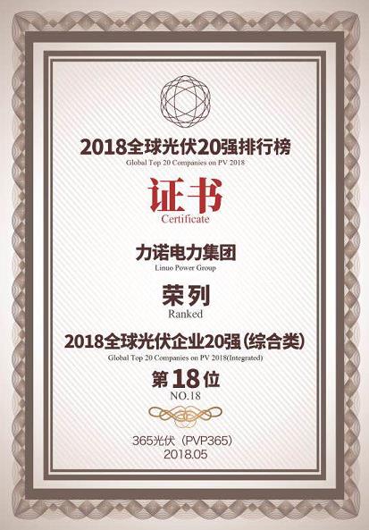 作为国内第一批进入光伏行业的企业,力诺电力以从事投资、设计、建设、运营光伏电站为主营业务。16年的行业底蕴,使得公司在研发、系统设计、系统集成、核心部件制造方面具有较强的优势,在营销、安装、运维、客服等方面有着专业可靠、经验丰富的团队,公司所建设安装维护的电站,深受各级政府及业主的好评,公司也频频获得业界大奖。5月26日,由行业权威机构PVP365主办的“2018年全球光伏行业20强”颁奖典礼在上海隆重举行,力诺电力凭借在行业中卓越的成绩荣膺光伏EPC总承包企业20强第8名,光伏投资企业20强第10名,并跻身中国乃至全球光伏企业20强。