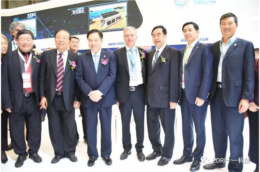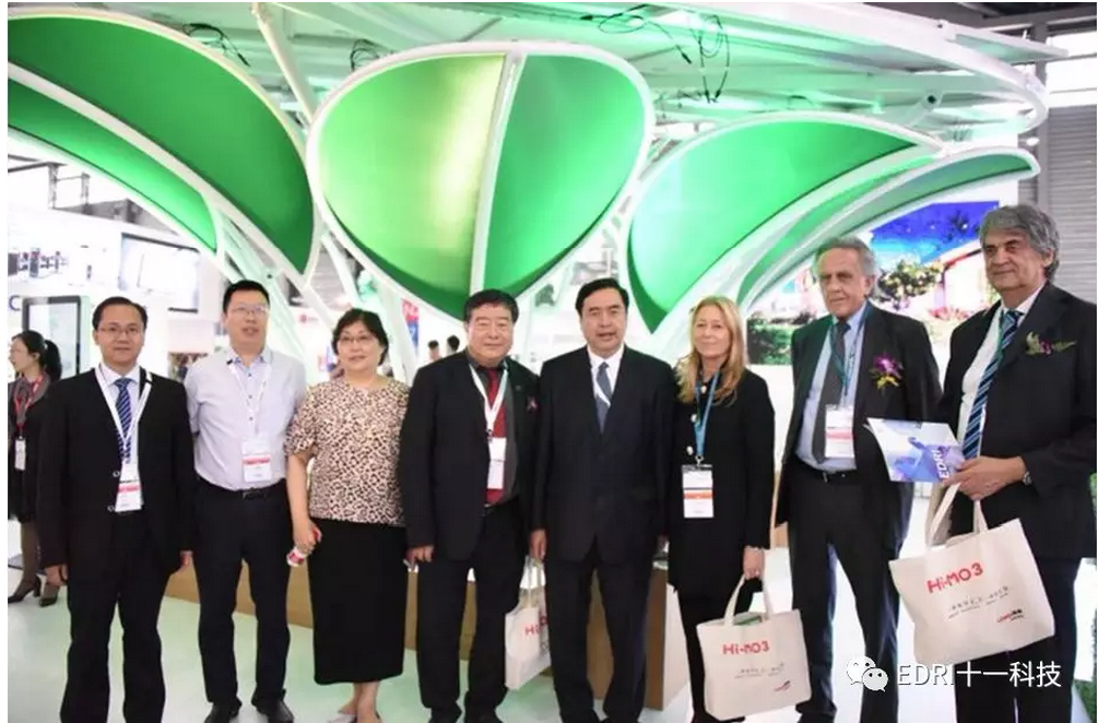 应赵振元同志邀请,本届大会主席、原国务院参事石定寰同联合国可再生能源组织和亚洲光伏协会秘书长米月莅临十一科技展台,赵振元同志亲切热情接待。这是对十一科技最大的鼓励,十一科技展台一下成为了焦点,此次展会十一科技以设计、总包、投资、光伏树四大业务领域参展,获得了石定寰参事一行领导与外国朋友的高度肯定,并表示将加强与十一科技在未来的合作与发展,赵振元同志与客人们亲切合影。