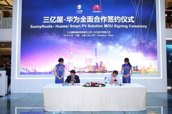 2018SNEC期间,全球智能光伏领导者华为与顺宇洁能科技股份有限公司、河北隆基泰和云能源科技有限公司、三亿屋新能源有限责任公司、北控清洁能源集团有限公司、北京同创互达科技有限公司、西班牙Grupotec公司、山东大海集团有限公司、江苏苏美达能源控股有限公司、中国电建集团贵州工程有限公司、熊猫绿色能源集团公司等达成全面合作,并在展台上举行了隆重的全面合作签约仪式。