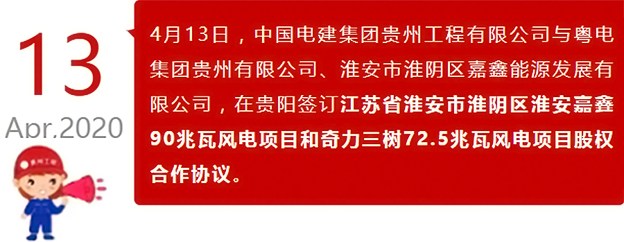 淮安嘉鑫和奇力三树风电项目由贵州工程公司承建,环保运维事业部负责履约。自2019年10月31日开发至今,在不到半年的时间里快速推进,成绩斐然!11月26日签订合作协议,11月29日签订EPC总承包合同,12月17日参加公司“风电项目履约誓师大会”,12月30日签订项目股权合作意向书, 4月3日举行开工仪式。