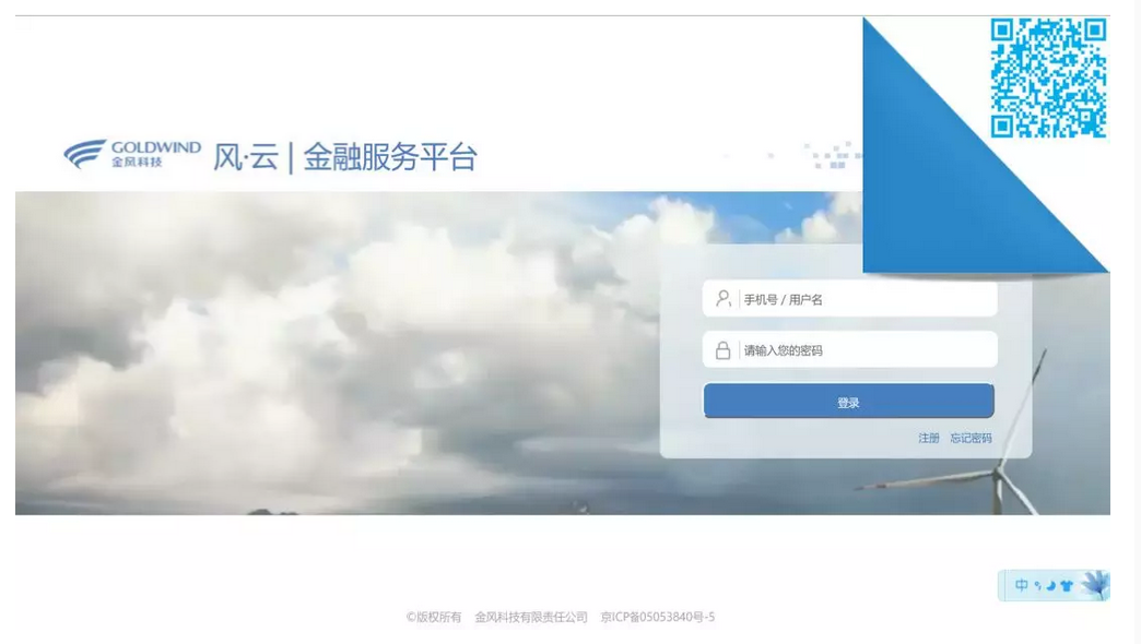 在金融数字化创新方面,金风科技依托金融+风电产业双向优势,开发“风•云”共享平台,增加透明度,降低认知门槛。金风科技利用已有风电产业大数据资源,从设备供应商、EPC承包商、业主、债权投资人等各类利益攸关方视角,对风电项目从经评、方案设计、施工管理、运维、贷后管理、项目评估监控,全流程设计数字化模型。