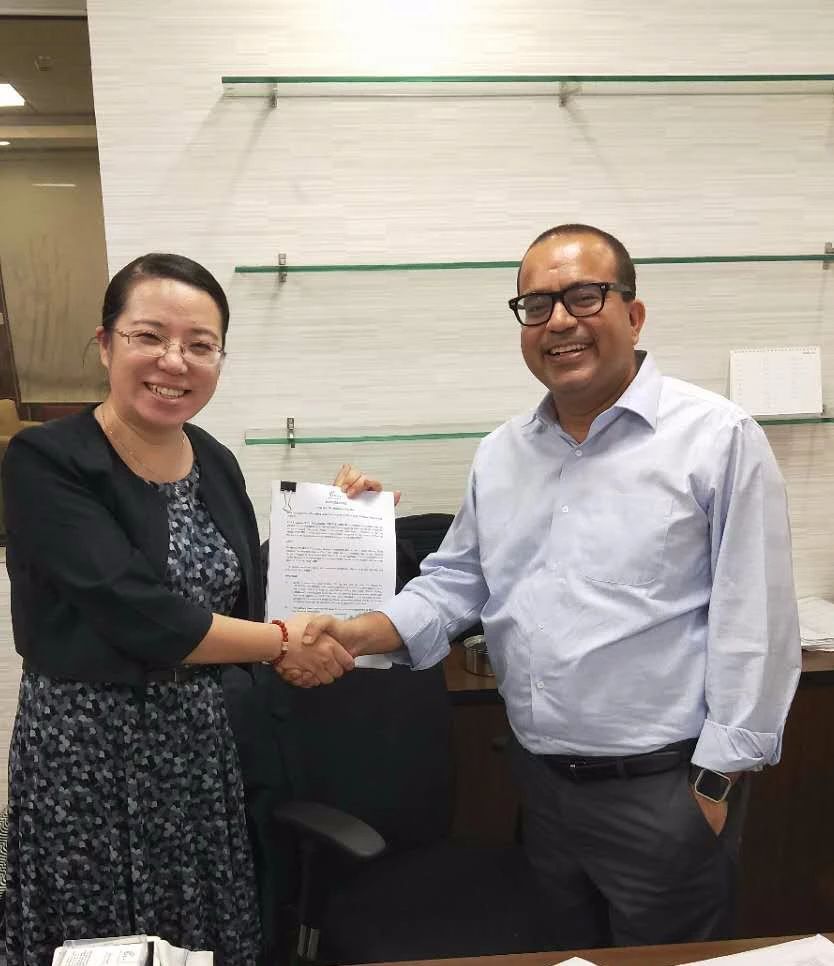 (左:正信光电营销总裁李倩;右:ACME总裁 Nikhil Dhingra)