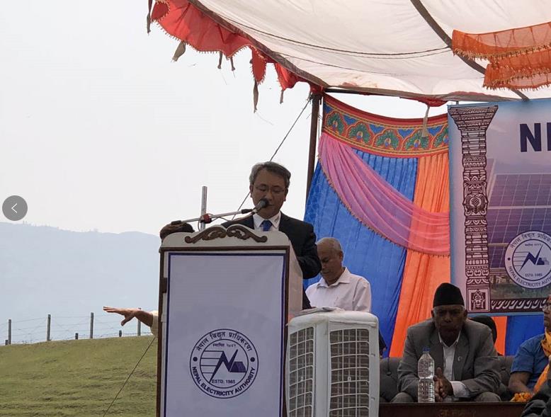 奠基仪式上,尼泊尔能源部长Barshaman Pun、尼泊尔电力管理局(NEA)Nutan Bhattrai、东方日升总裁王洪等共同出席,并共同见证了中尼在新能源领域合作再攀绿色高峰。