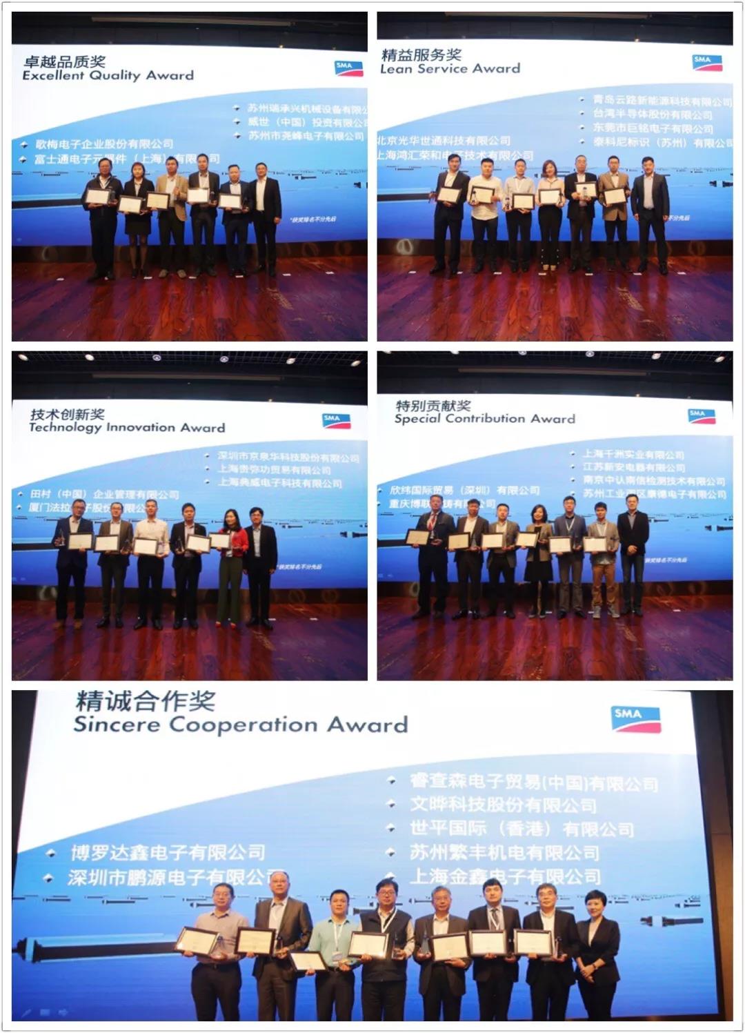 除了干货分享外,为感恩供应商们在过去一年中对SMA中国在供应链的配合及贡献,大会同期还举行了优秀供应商颁奖盛典,今年共设立六个奖项:卓越品质奖、精益服务奖、技术创新奖、特别贡献奖、精诚合作奖、金石伙伴奖,深南电路股份有限公司等36家供应商获奖,深南电路股份有限公司李总作为供应商代表发表了获奖感言,李总说道:“今天能站在这里领取SMA最佳供应商奖,内心充满了诸多的感动和感激,感动于这份同奋斗共进退的时光,感谢SMA成就了深南在光伏领域的梦想!深南将一如既往,和SMA一起,匠心独创,合作共赢!”。