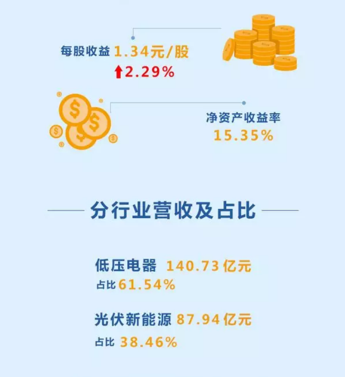 本周末,正泰集团旗下上市公司正泰电器(股票代码:601877)发布2017年年度报告以及2018年第一季度报告。报告显示,2017年公司实现营业收入234.17亿元,同比增长16.13%;实现归属于上市公司股东净利润28.40亿元,同比增长29.98%。2018年第一季度,公司实现营业收入50.95亿元,同比增长27.99%;实现归属于上市公司股东净利润6.13亿元,同比增长70.59%。公司2017年业绩保持稳定增长的同时,在2018年一季度呈现加速增长态势,双主业优势凸显公司价值,完美实现“开门红”。了解2017年年报更多主要数据,请详见长图: