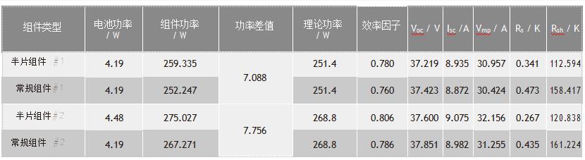 第一,相同效率的半片光伏组件比常规整片组件输出功率有明显的提升。这主要得益于半片组件串联电阻的降低,填充因子FF 的提高。同时组件因内部电阻降低,使其发电工作时的温度比常规组件低,从而进一步提高组件发电能力。