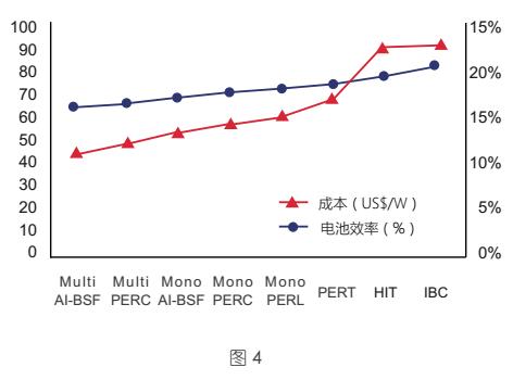 PERC 目前的成本仍比较高,对高效组件生产商来说,设备投资高,制程复杂, 工序增加导致破片率上升的问题制。IBC 电池使用的N 型硅片成本较高,电池制备过程中需要多步掺杂等复杂的工艺,使得其制造成本较高,技术门槛高。HIT 电池工艺要求严格,要获得低界面态的非晶硅/ 晶体硅界面,对工艺环境和操作要求也较高,需要开发适宜的低温封装工艺。其他技术或原材料成本高、或技术不成熟良率无法保证等各种原因导致难以规模化发展。