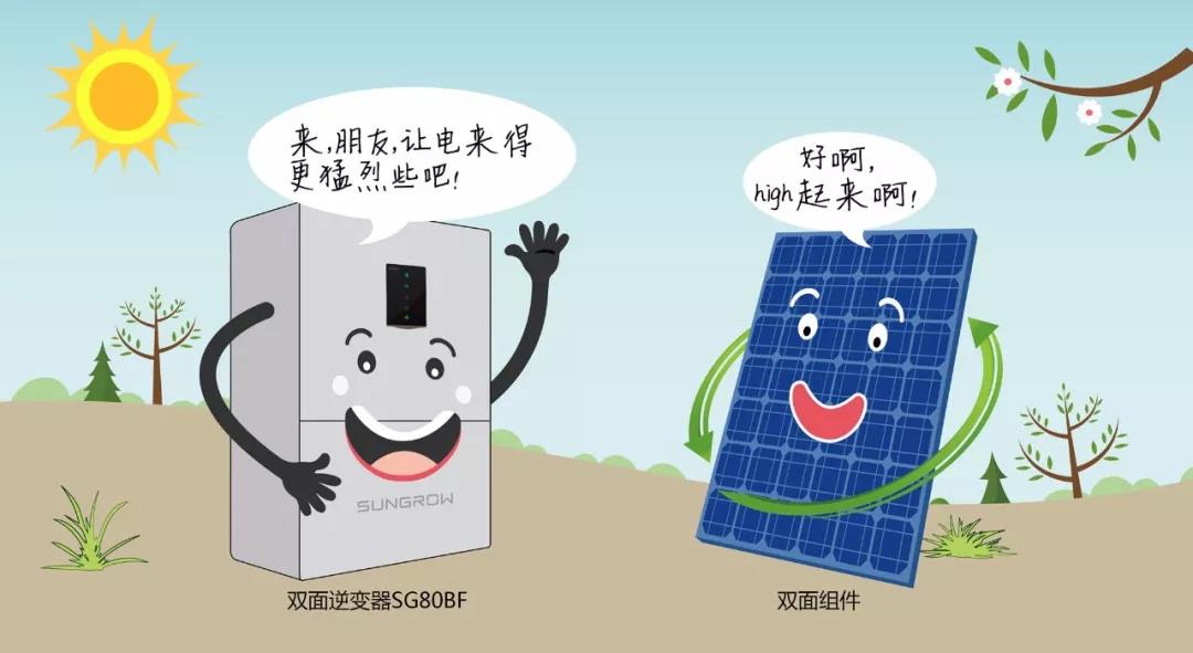 你们人类常说“爱一个人的最好方式是成全”,我对双面组件也是如此。比如说,我通过优化低功率段的转换效率,来成就双面组件弱光高效的优势,大大提升阴雨天及早晚时段的发电量;我沿用阳光电源光伏逆变器的智能风冷技术,智慧化调控逆变器内部器件温度,避免高温降额,陪伴组件可靠运行25年。