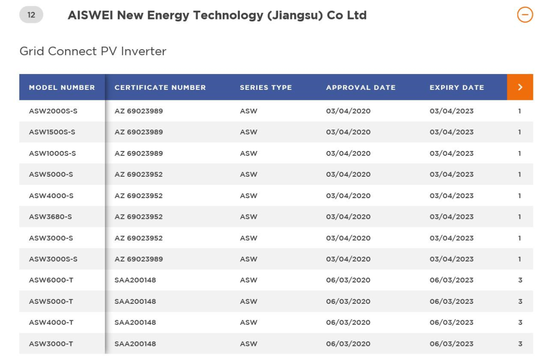 日前,爱士惟旗下海外品牌Solplanet全新系列户用逆变器继2月份通过澳洲认证测试取得澳洲证书后,又成功通过了澳大利亚清洁能源协会(Australian Clean Energy Council,简称CEC)认可,被列名在该协会的太阳能光伏组件列表资料库。列名范围包含Solplanet品牌ASW系列的1kW-5kW单相户用逆变器产品,以及3kW-6kW三相户用逆变器产品。