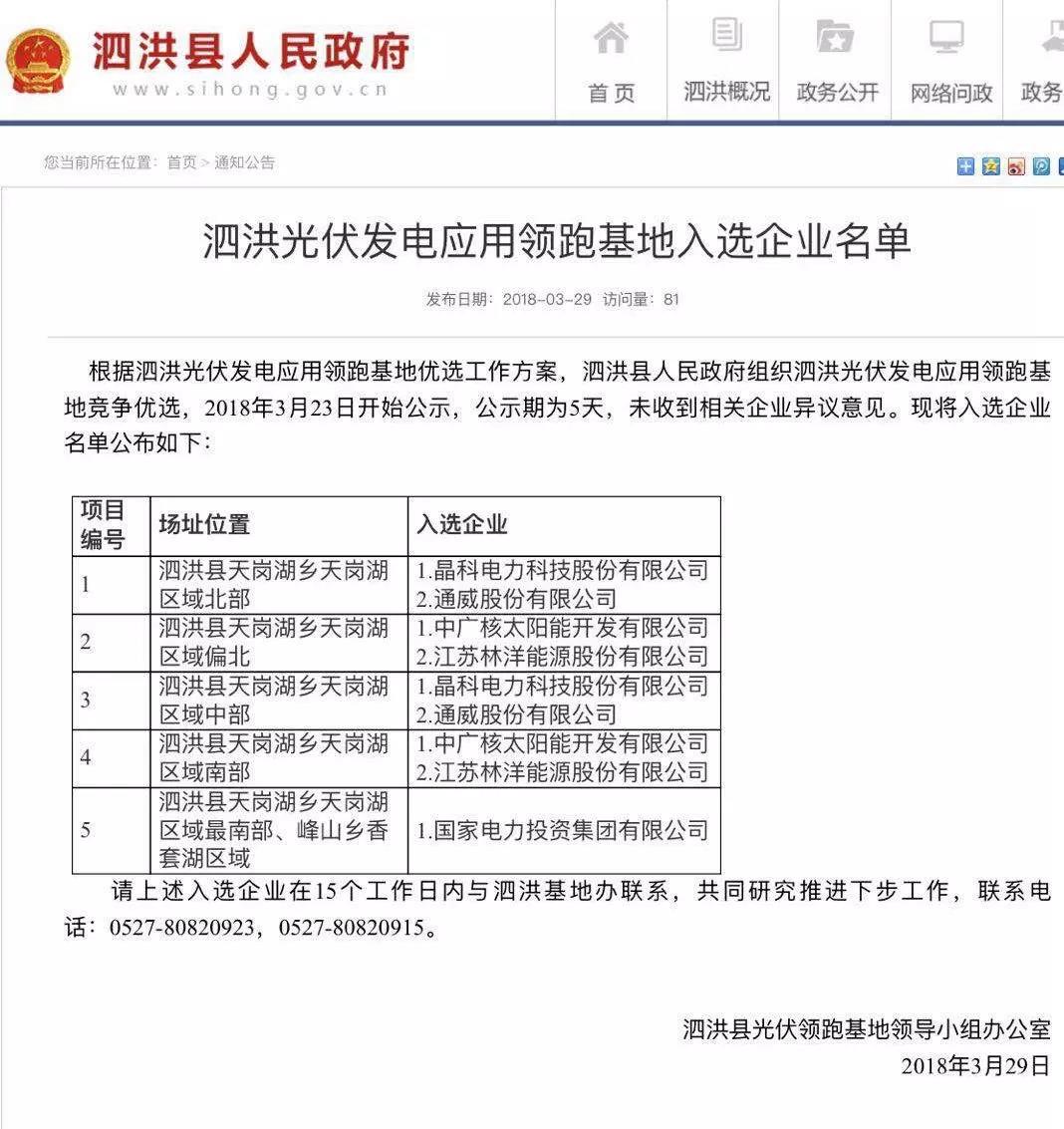 作为成功中标国家第二批领跑者基地项目——安徽淮北濉溪刘桥采煤沉陷区50MW光伏电站项目并如期并网的林洋能源,凭借卓越的电站设计能力、完善的供应链体系、丰富的施工管理经验、N型双面电池和组件生产能力、高效电站运维实力,再次不负众望,携手中广核太阳能开发有限公司分别以0.52元/kWh和0.53元/kWh的上网电价成功中标国家第三批领跑者基地项目——泗洪县天岗湖乡天岗湖区域偏北及南部2个领跑者基地,中标率达40%,项目规模总计达200MW!