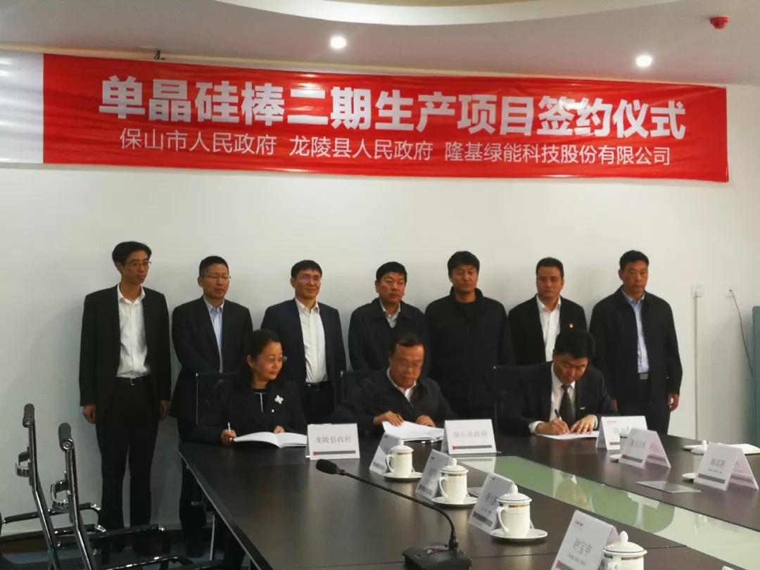 3月28日,隆基绿能科技股份有限公司(以下简称“隆基股份”)与保山市政府就年产6GW单晶硅棒项目签订投资协议。该项目投资约30亿元,计划于2018年至2019年投建。中共保山市委书记赵德光、市长杨军一行参加签约仪式。此次签约,意味着隆基股份与保山市的合作再次进入新阶段。
