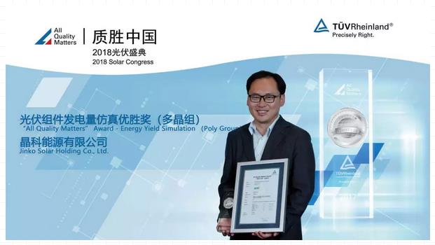 近日,在江苏无锡召开的TÜV莱茵“质胜中国”光伏盛典上,晶科能源凭借出色的发电性能与领先业内的品质标准成功荣膺多晶组发电量仿真优胜奖,位列第一名。