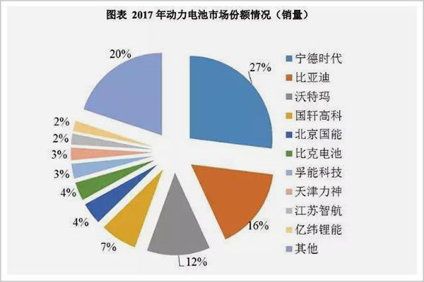 2017年,宁德时代在市场份额上完成了对比亚迪的超越,不仅稳坐国产动力电池企业的第一把交椅,同时也成为全球动力电池出货量最高的企业。工信部公布的12批新能源车型目录共3200余款车型中,宁德时代提供动力电池的超过了500款。