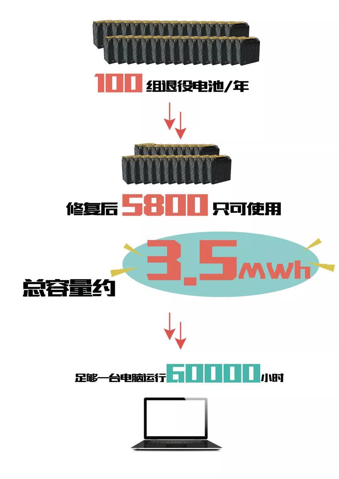 我国广州地区,每年约有100组铅酸锂电池电池从南方电网广州供电局退役,经修复可使用的退役电池可达5800只,总容量约3.5MWh,这些电能足够一台笔记本电脑运行6万个小时。