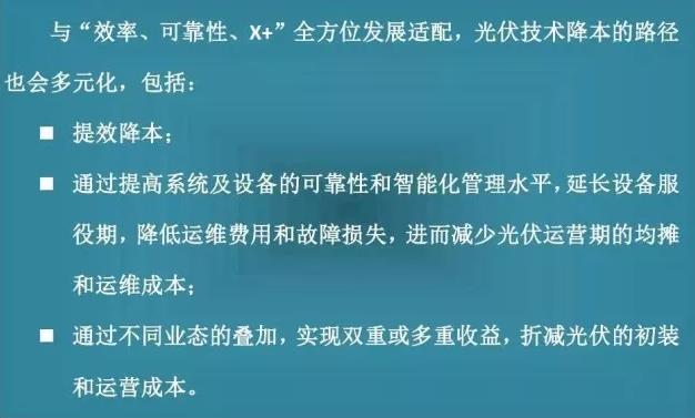 总体看,受领跑者制度及其他方面的影响,近几年,光伏发展偏重效率,不够均衡。要实现实质性的平价上网,甚或成为最廉价的电源,在提升效率的同时,要更加重视“可靠性”及“X+”方面的技术研究及标准和政策引导。