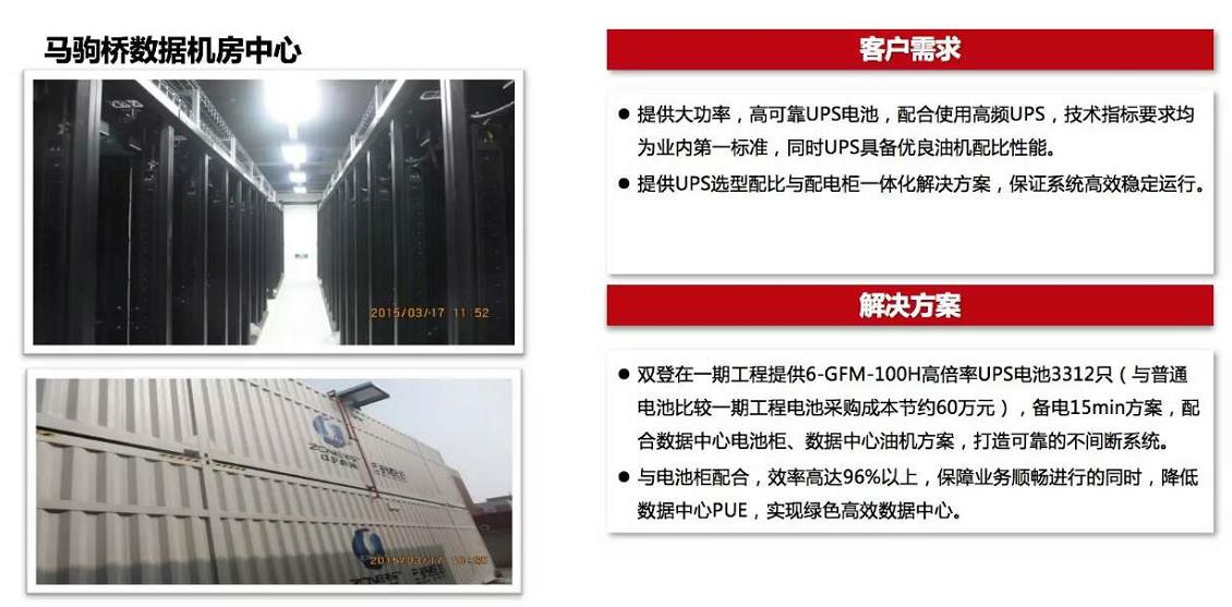 大数据时代背景下,数据中心趋于模块化、自动化、绿色节能的趋势得到了业界的共识。蓄电池的优劣对UPS功能的发挥有很大影响,这一点在不少人的心目中不以为然。质量差的电池虽然暂时实现了不间断,在一般情况下用是可以的,但在关键时候和关键场合使用给我们的客户带来的损失是非常可怕的。