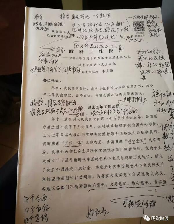 全国人大代表、奥克斯集团董事长郑坚江在政府工作报告上密密麻麻写下了一大堆笔记。这是他第二个全国人大代表任期。