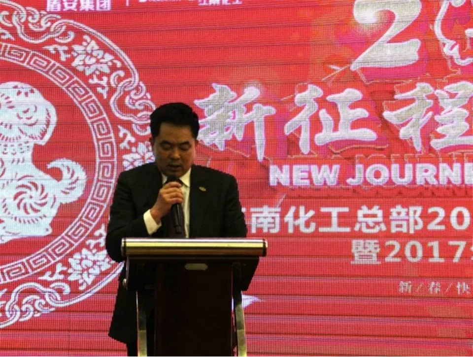江南化工总部召开的2018年度新春联欢晚宴暨2017年度先进表彰会上,总裁沈跃华号召:上下一心,共同努力,从挑战中抓住机遇,在竞争中脱颖而出。