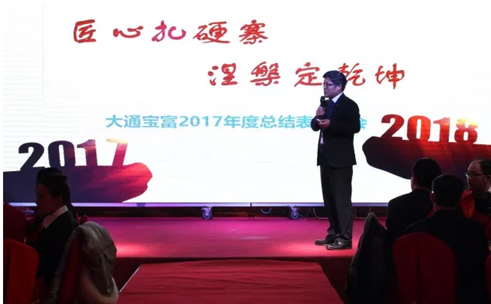大通宝富2018年迎新晚会暨表彰大会上,总经理周建诚强调:我们要始终坚持不断奔跑,坚持不懈奋斗!幸福是奋斗出来的,梦想要靠奋斗去实现的。
