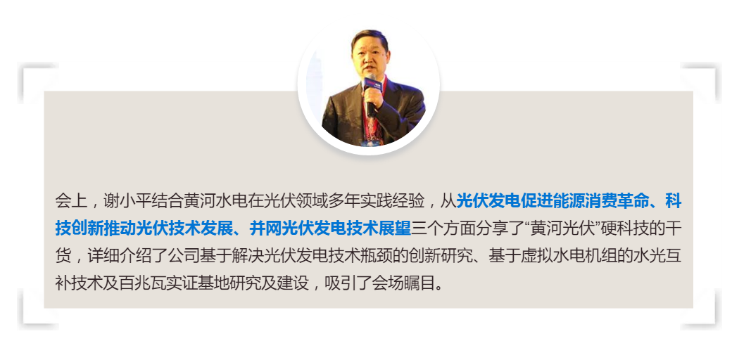 2月25日至26日,以“光伏硬科技、人类新生活”为主题的2018光伏硬科技创新峰会在西安举办,黄河水电公司董事长、党委书记谢小平应邀出席会议并作了题为《并网光伏发电技术硬科学研究与展望》的主旨演讲,与业界大咖共同探讨“硬科技”硬理念给光伏行业带来的变革。