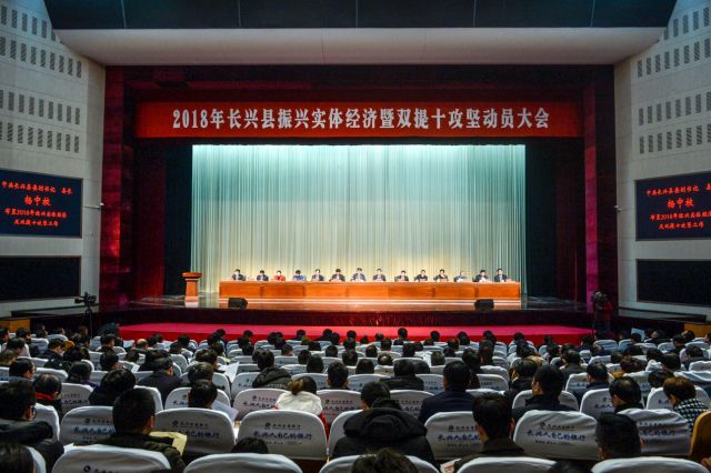 长兴县振兴实体经济暨双提十攻坚动员大会现场